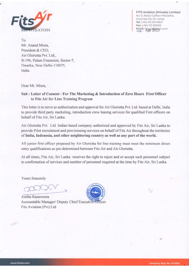 “Air Glorietta” is also providing experienced pilots to “Fits Air” like Type Rated Examiners, Type Rated Instructors, Line Captains and First officers from the entire world.